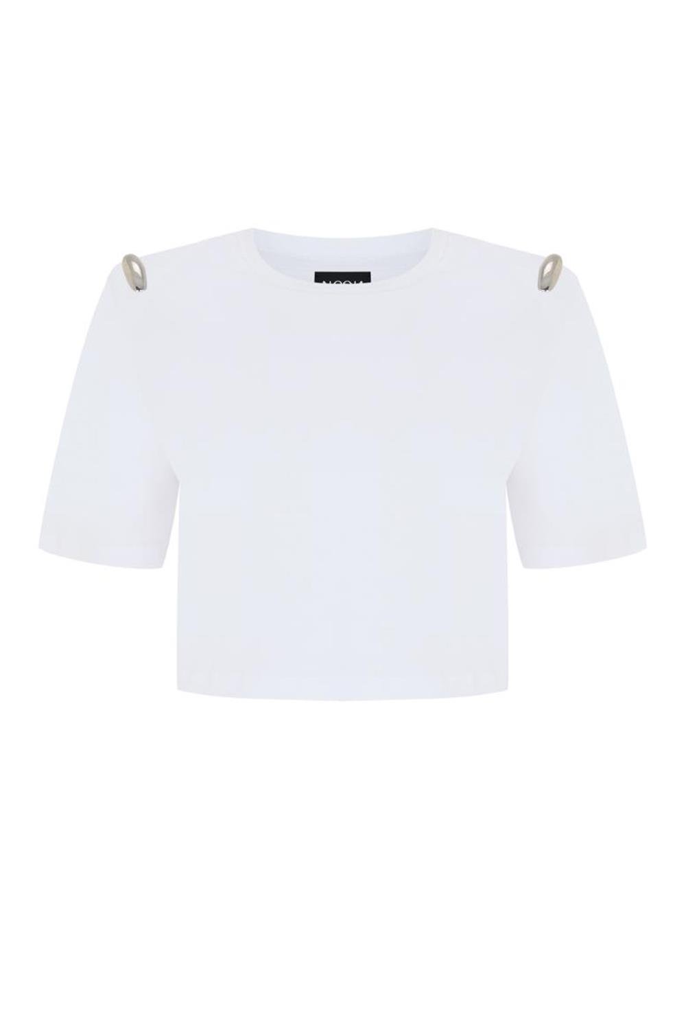 Açıklama: Omuzları çıkarılabilir silver metal aksesuarlı vatkalı tshirt