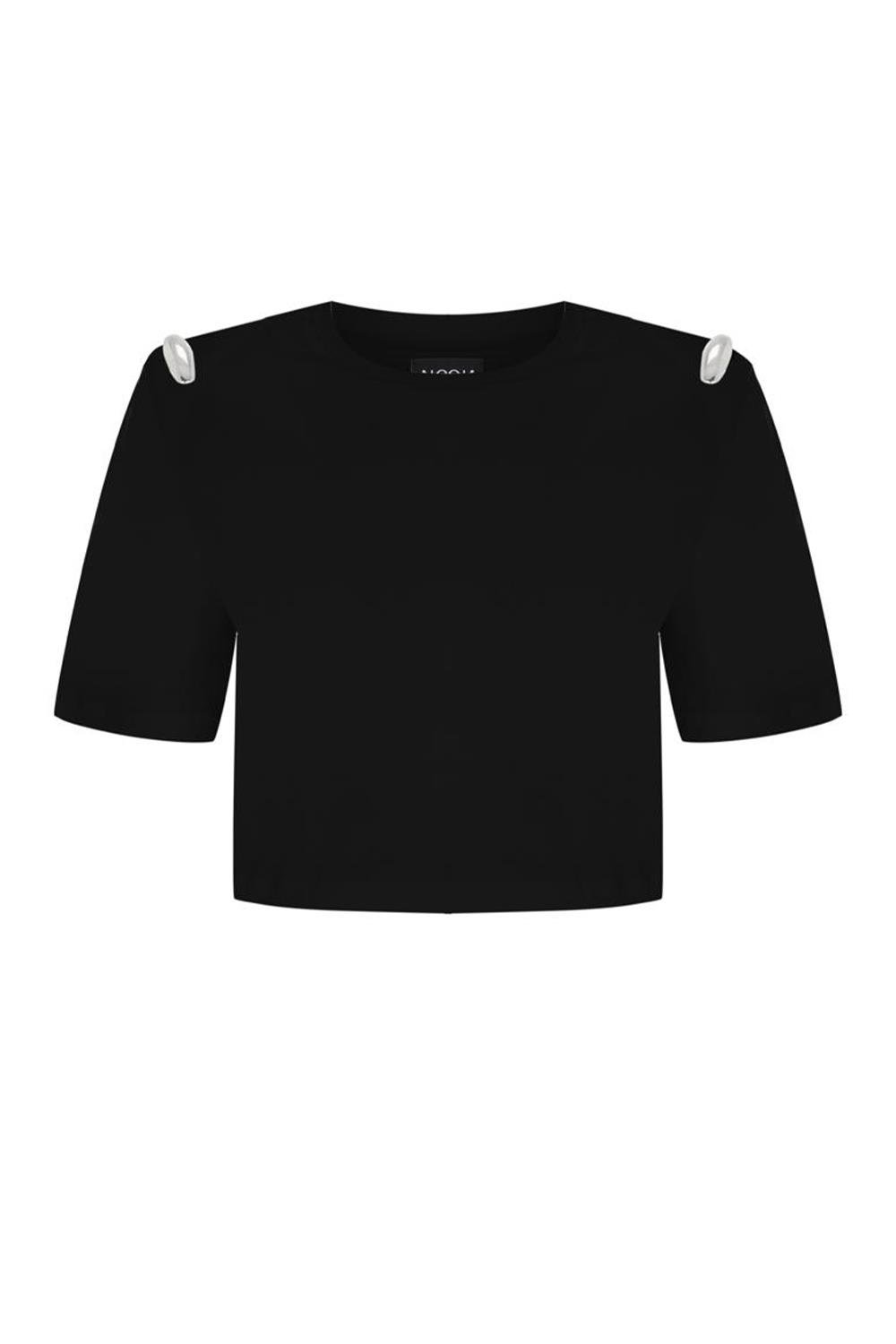Açıklama: Omuzları çıkarılabilir silver metal aksesuarlı vatkalı tshirt