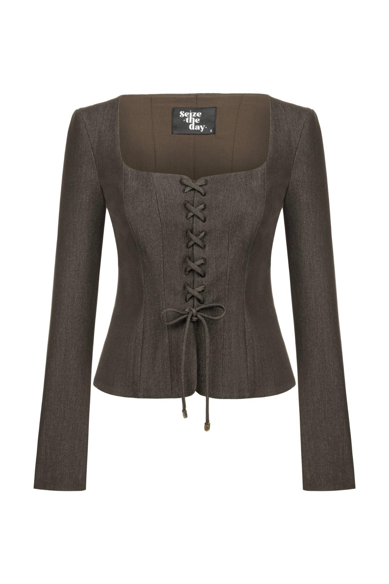 Lisa Top, bağcık detaylı korse tasarımı ve kare yaka yapısıyla cesur bir şıklık sunar. Sırttan fermuar kapamasıyla kolay kullanım sağlar. Modern kombinler için ideal bir parça.